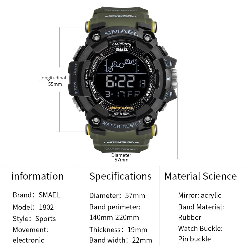 Item name: SMAEL Mens Watch Military 1802